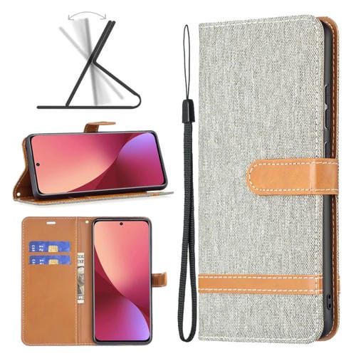Para Xiaomi 12 Color Denim Texture Texture Cuero Case (Gris)