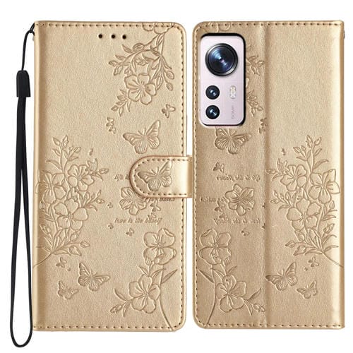 Para Xiaomi 12 Lite Funda de Cuero para Teléfono con Mariposas y Flores (Dorado)