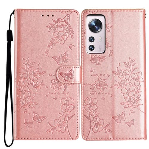 Para Xiaomi 12 Lite Funda de Cuero para Teléfono con Mariposas y Flores (Oro Rosa)