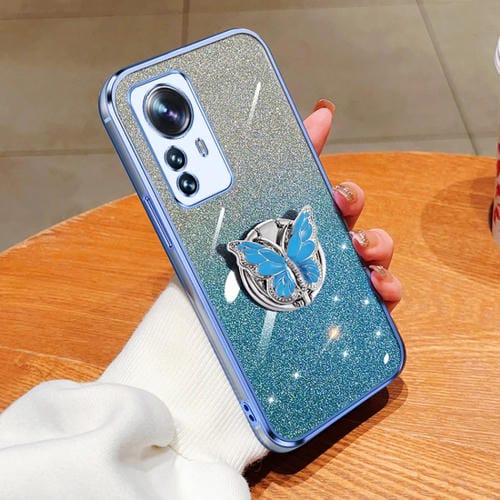 Para Xiaomi 12 Pro Estuche para Teléfono de TPU con Soporte de Mariposa con Brillo Degradado Plateado (Azul Sierra)