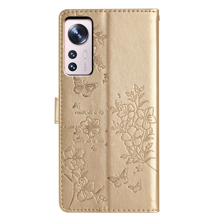 Para Xiaomi 12 Pro Funda de Cuero para Teléfono con Mariposas y Flores (Dorado)