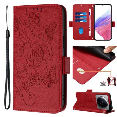 Para Xiaomi 12S Funda de Teléfono de Cuero Antirrobo Rfid con Relieve Rosa Ultra (Rojo)