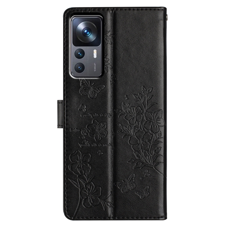 Para Xiaomi 12T / 12T Pro Funda de Cuero para Teléfono con Mariposas y Flores (Negro)