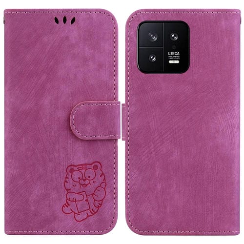 Para Xiaomi 13 5G Little Tiger Repujado Funda de Cuero (Rosa Rojo)