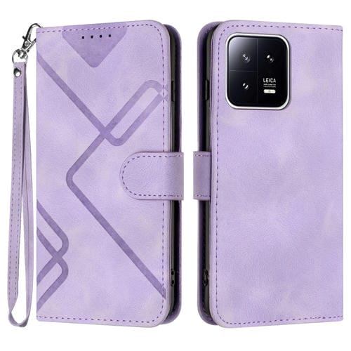 Para Xiaomi 13 Line Pattern Skin Feel Funda de Cuero para Teléfono (Púrpura Claro)