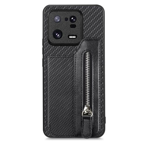 Para Xiaomi 13 Pro Carbon Fiber Flip Zipper Wallet Phone Case (Negro)