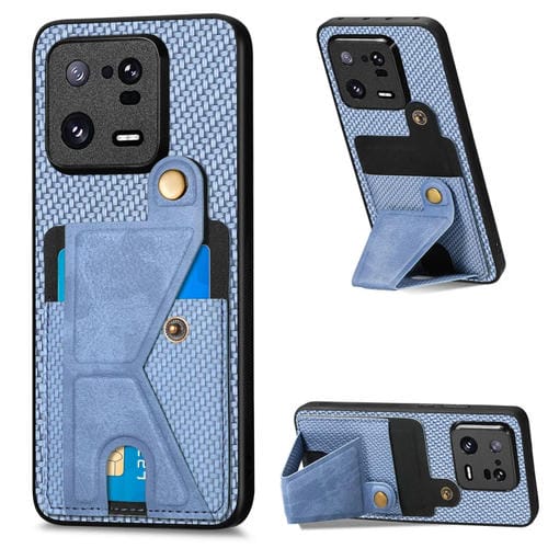 Para Xiaomi 13 Pro Carbon Fiber Wallet Flip Card Holder Phone Case (Azul)