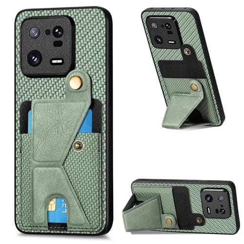 Para Xiaomi 13 Pro Carbon Fiber Wallet Flip Card Holder Phone Case (Verde)