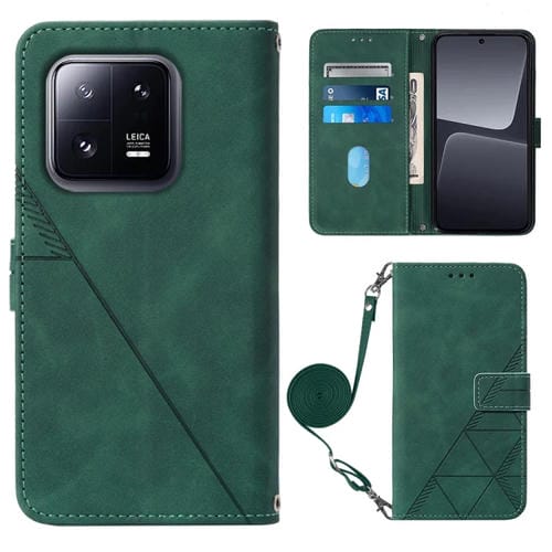 Para Xiaomi 13 Pro Crossbody 3D Funda de Cuero con Tapa En Relieve para Teléfono (Verde Oscuro)