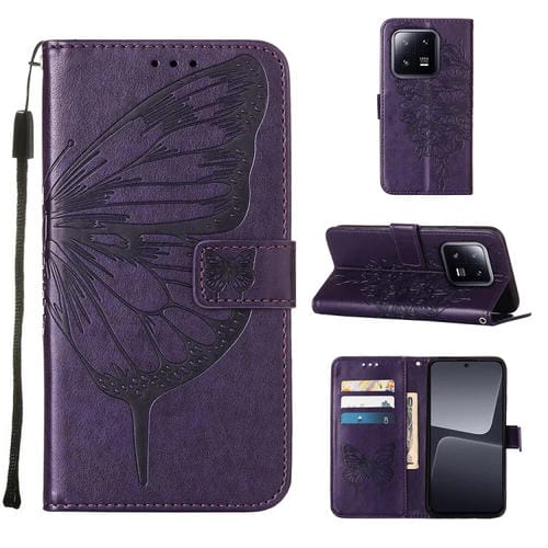 Para Xiaomi 13 Pro Estuche para Teléfono de Cuero con Mariposa En Relieve (Púrpura Oscuro)
