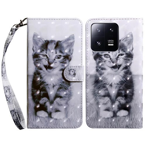 Pour Xiaomi 13 Pro Étui de téléphone en cuir à motif peint en 3D (chat souriant)