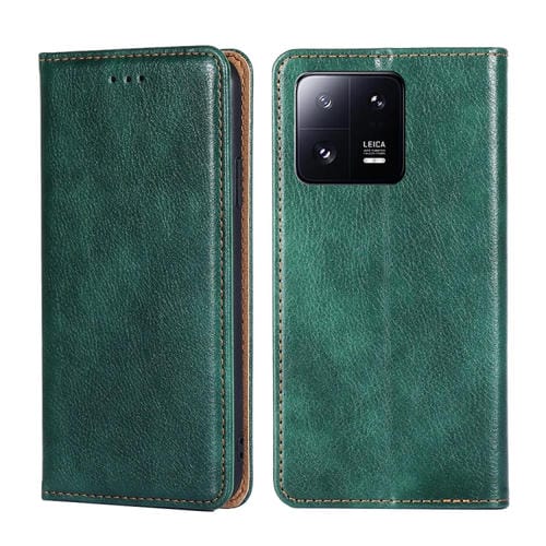 Para Xiaomi 13 Pro Estuche para Teléfono de Cuero Magnético de Color Sólido con Aceite Brillante (Verde)