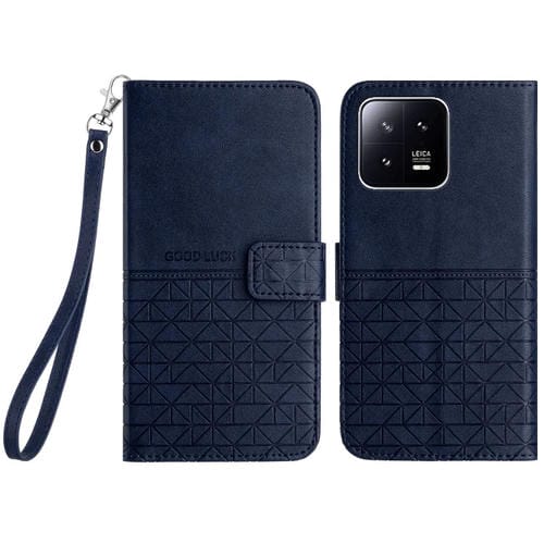 Para Xiaomi 13 Pro Funda de Cuero con Textura Rómbica y Cordón (Azul)