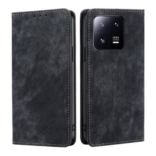 Para Xiaomi 13 Pro Rfid Funda de Teléfono de Cuero Magnético con Cepillo Antirrobo (Negro)