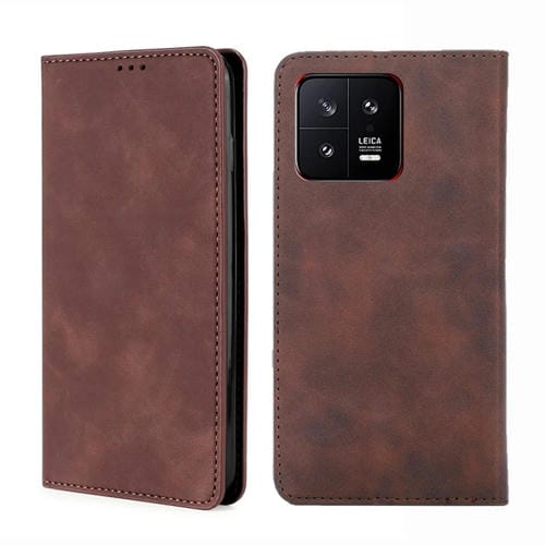 Para Xiaomi 13 Pro Skin Feel Funda de Teléfono de Cuero con Tapa Horizontal Magnética (Marrón Oscuro)