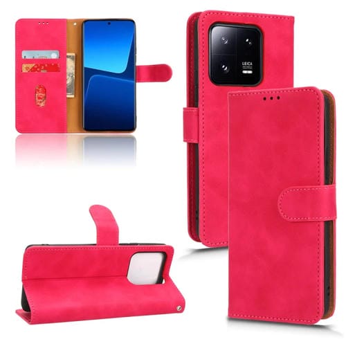 Para Xiaomi 13 Pro Skin Feel Magnetic Flip Leather Phone Case (Rosa Roja)