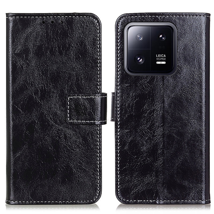 Para Xiaomi 13 Retro Crazy Horse Texture Funda de Cuero para Teléfono (Negro)