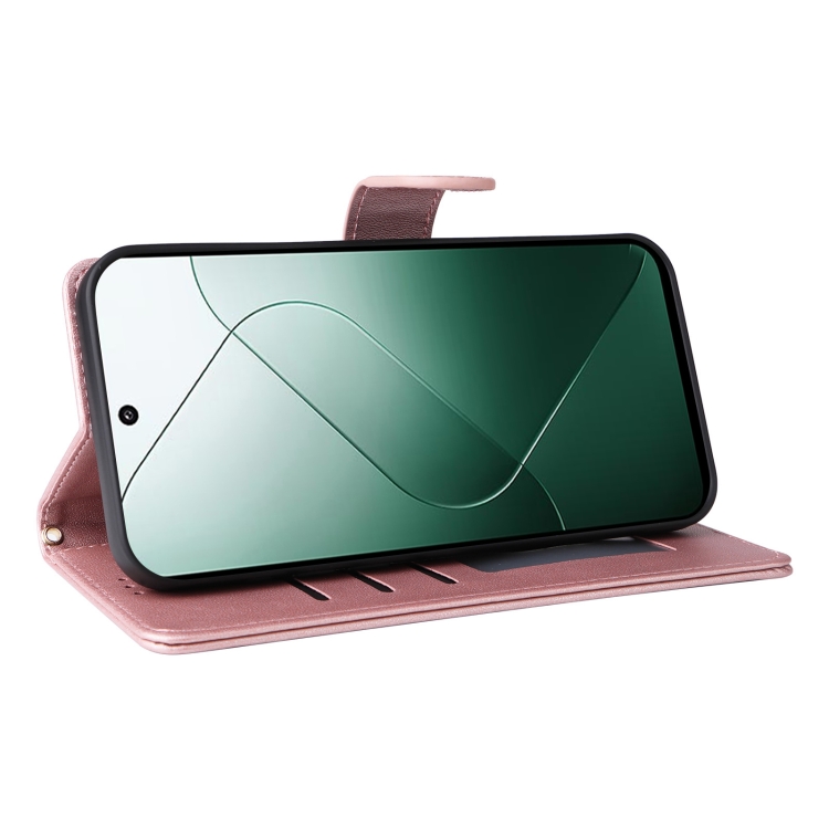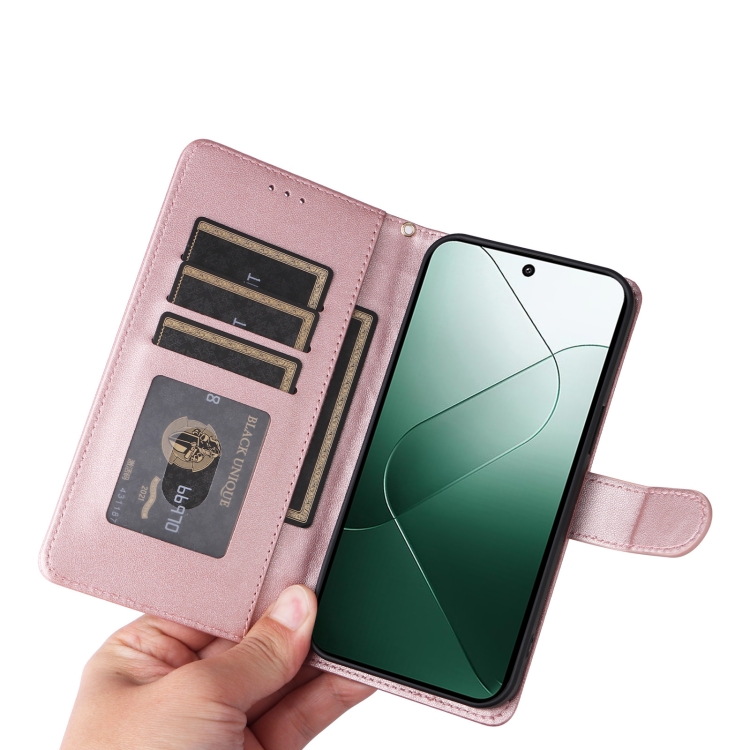 Para Xiaomi 14 5G Diamond Lattice Funda De Cuero Para Teléfono Con Tapa (Oro Rosa)