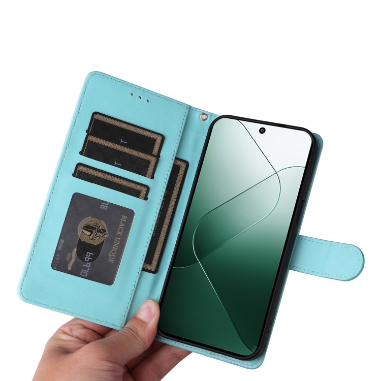 Para Xiaomi 14 5G Diamond Lattice Funda De Cuero Para Teléfono Con Tapa (Verde Menta)