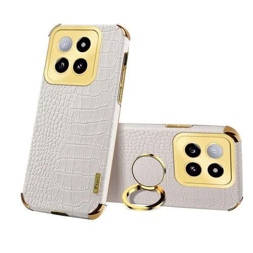 Para Xiaomi 14 6D Funda Trasera De Cuero Con Textura De Cocodrilo Galvanizada Y Soporte (Blanco)