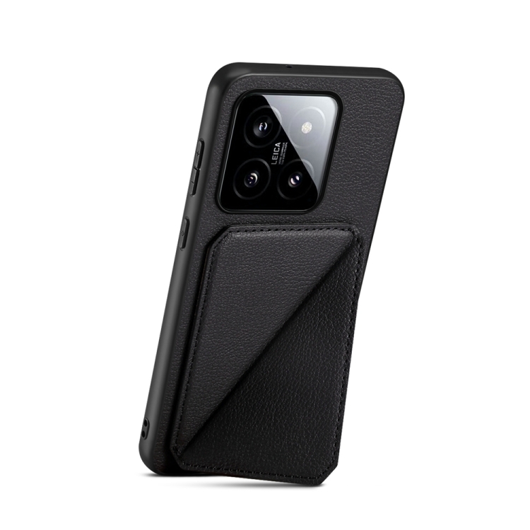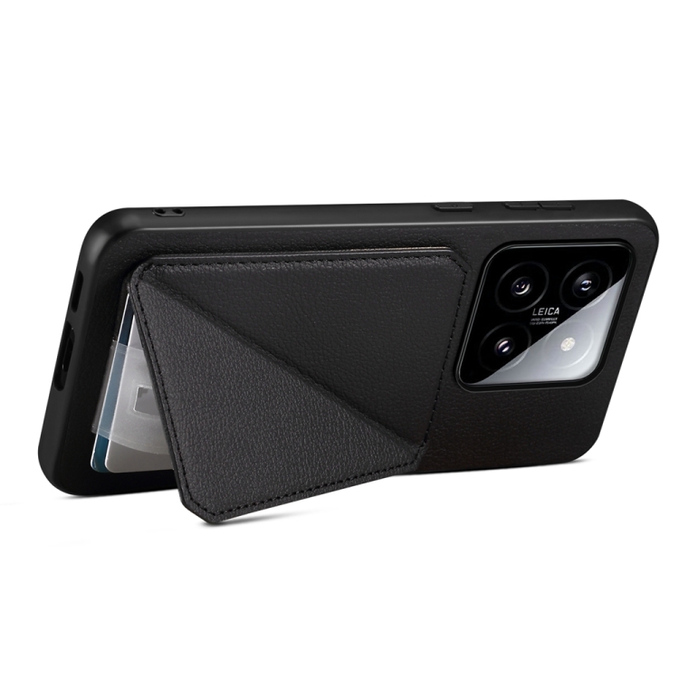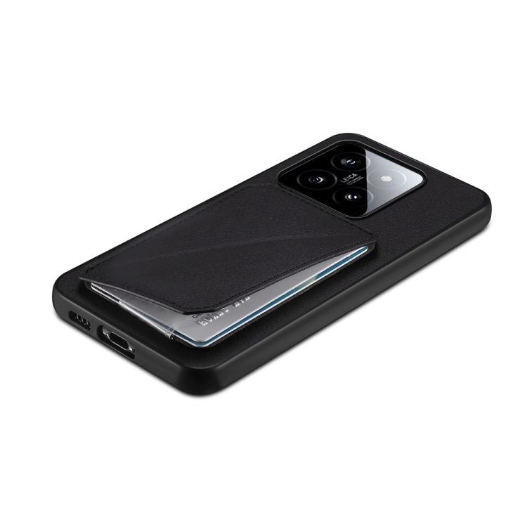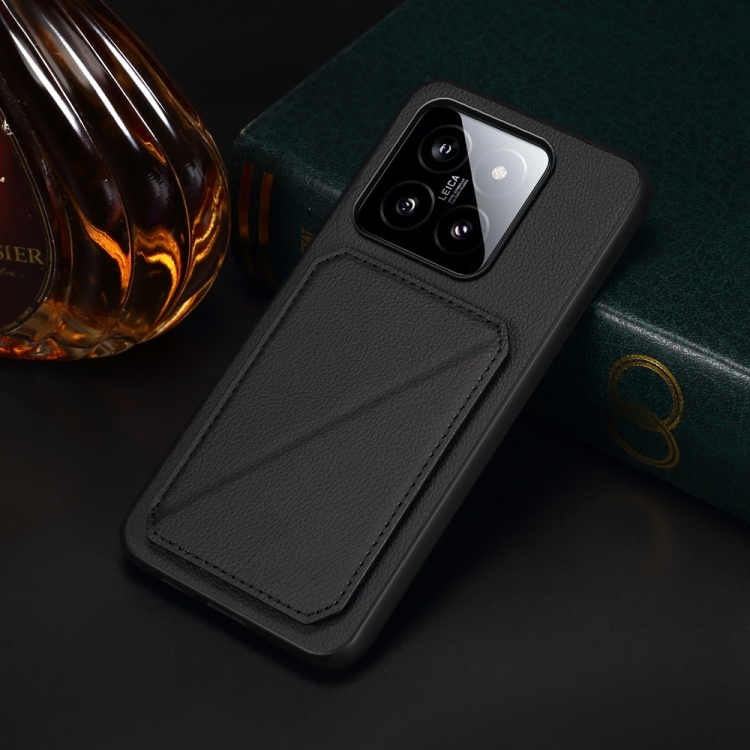 Para Xiaomi 14 D04 Funda Para Teléfono Con Soporte Para Ranura Para Tarjeta Dual Con Textura De Pantorrilla (Negro)