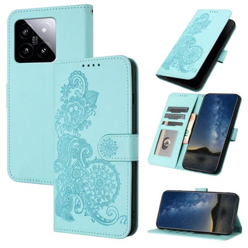 Para Xiaomi 14 Datura Flower Funda De Cuero Con Tapa En Relieve (Azul Claro)