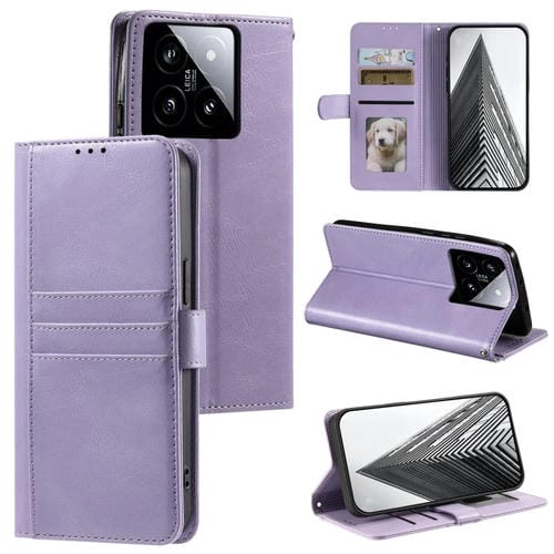 Para Xiaomi 14 Funda De Cuero Para Teléfono Con Billetera Simple Para 6 Tarjetas (Púrpura)