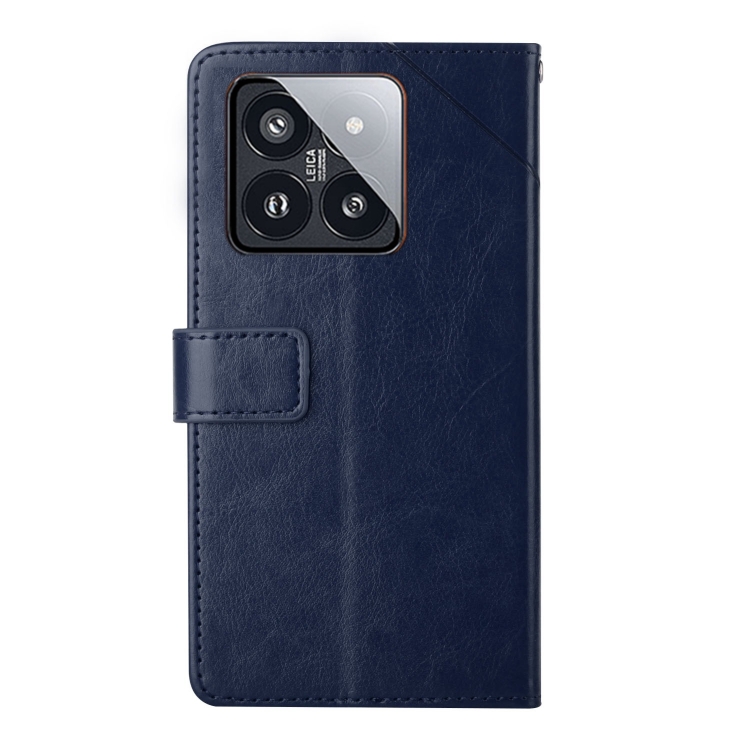 Para Xiaomi 14 Funda De Teléfono De Cuero Con Tapa Con Patrón En Forma De Y (Azul)