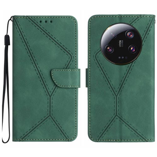 Para Xiaomi 14 Funda De Teléfono De Cuero En Relieve Con Costuras Ultra (Verde)