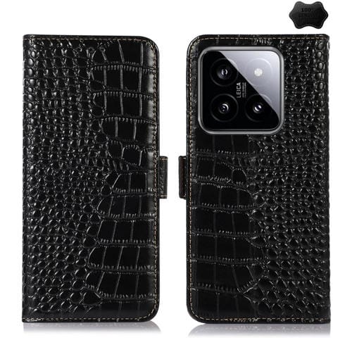 Para Xiaomi 14 Funda Para Teléfono De Cuero De Vaca Con Capa Superior De Cocodrilo (Negro)