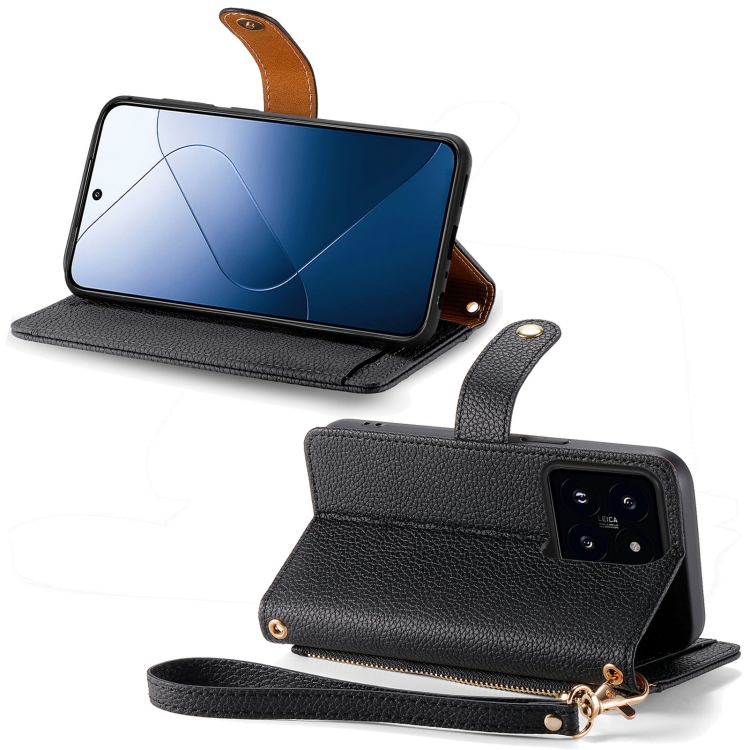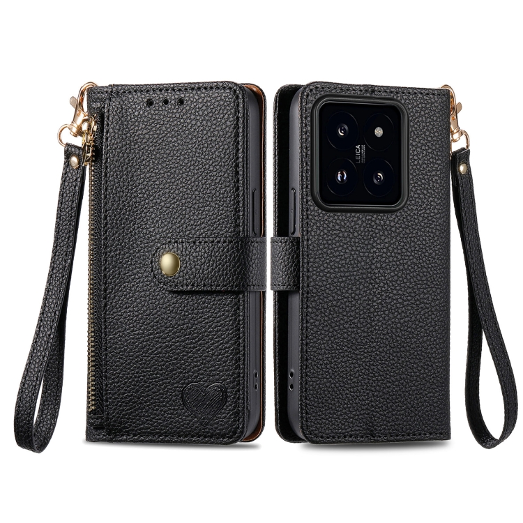 Para Xiaomi 14 Love Zipper Lanyard Funda De Cuero Para Teléfono (Negro)