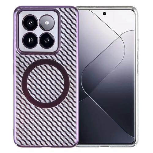 Para Xiaomi 14 Pro 6D Caja De Teléfono Para Pc Magsafe Transparente De Fibra De Carbono Plateada (Aurora Purple)