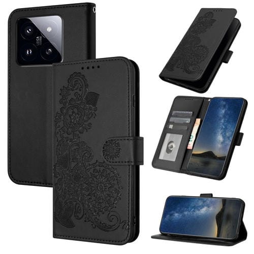 Para Xiaomi 14 Pro Datura Flower Funda De Cuero Con Tapa En Relieve (Negro)