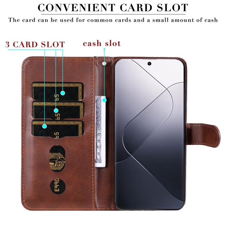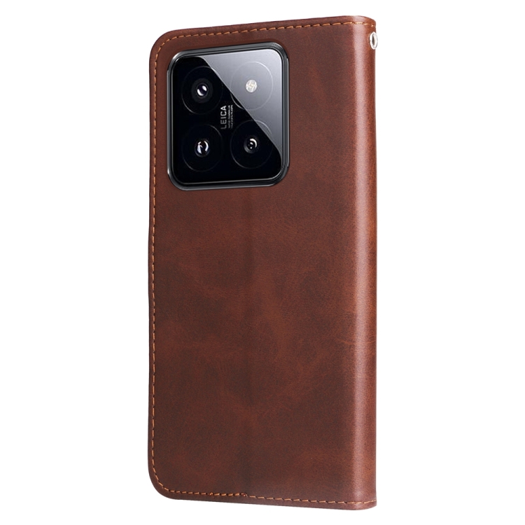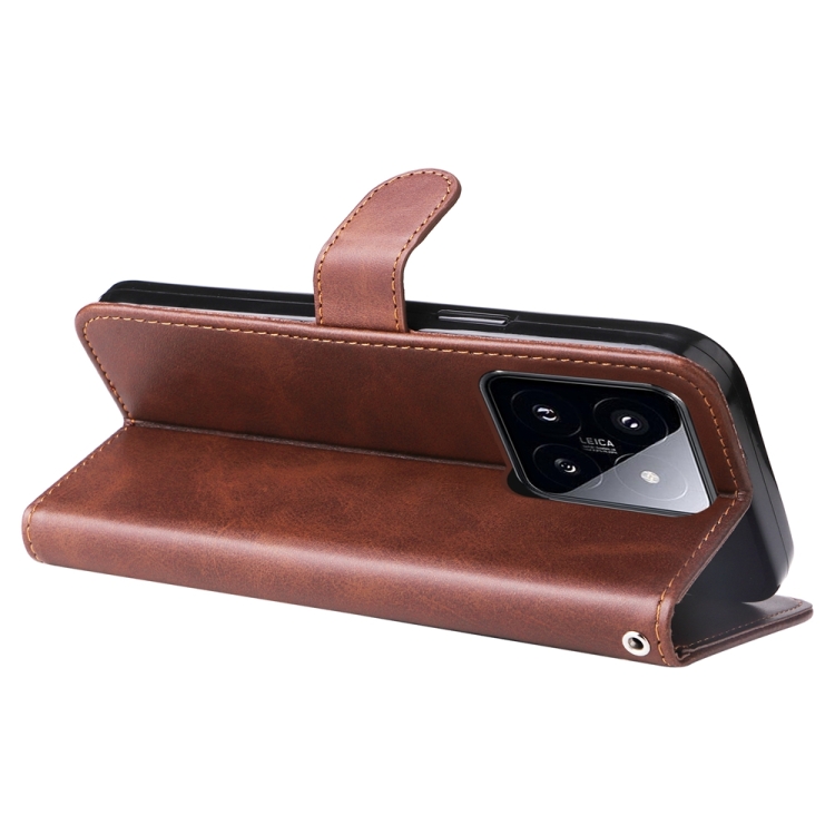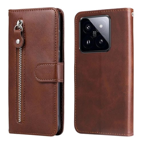 Para Xiaomi 14 Pro Fashion Becerro Textura Cremallera Funda De Cuero Para Teléfono (Marrón)