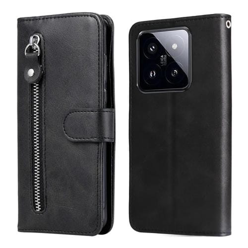Para Xiaomi 14 Pro Fashion Becerro Textura Cremallera Funda De Cuero Para Teléfono (Negro)