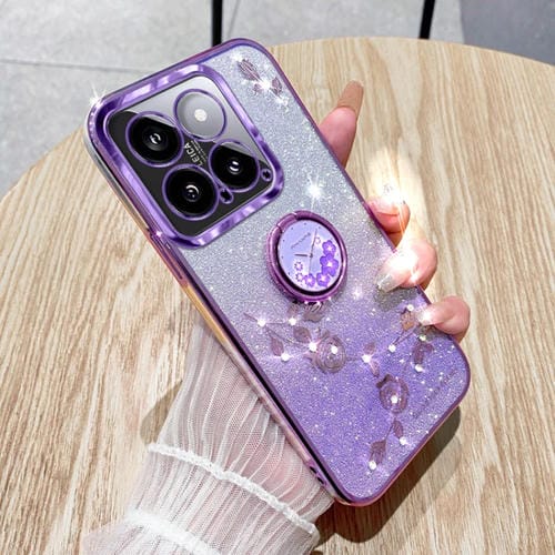 Para Xiaomi 14 Pro Gradient Glitter Immortal Flower Ring Funda Para Teléfono Con Todo Incluido (Púrpura)