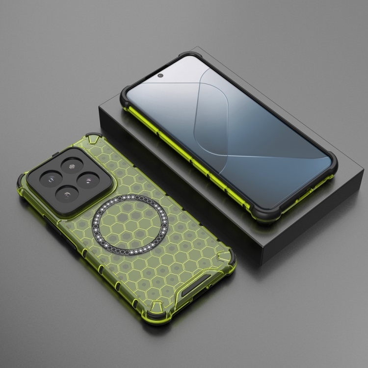 Para Xiaomi 14 Pro Honeycomb Magnetic Ring Funda Para Teléfono A Prueba De Golpes (Verde)
