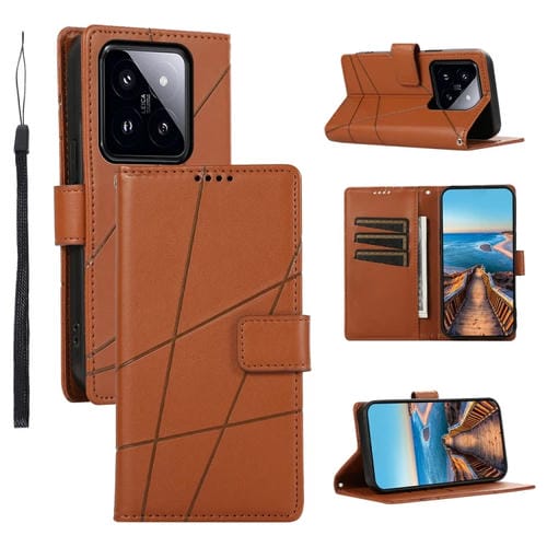 Para Xiaomi 14 Pro Pu Funda De Teléfono Con Línea En Relieve Con Textura De Cuero Genuino (Marrón)