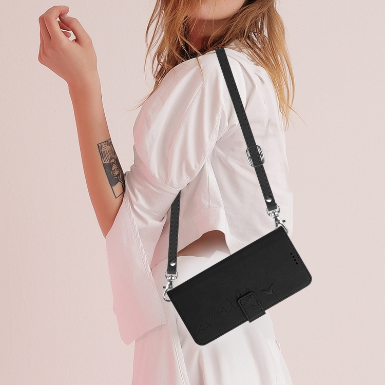 Para Xiaomi 14 Pro Skin Feel Heart Funda De Cuero En Relieve Con Cordón Largo (Negro)