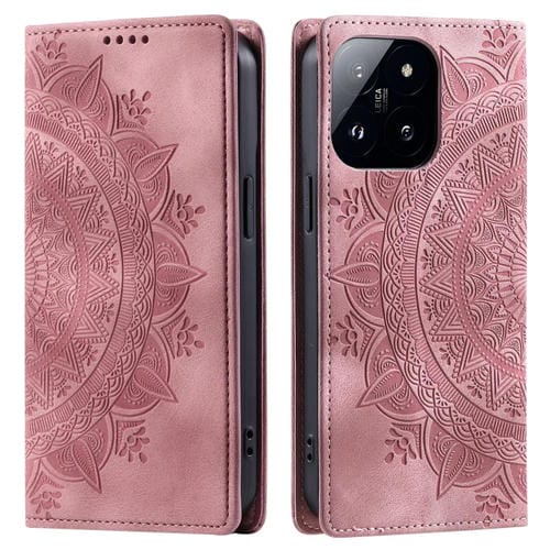 Para Xiaomi 14 Pro Totem Funda De Cuero Magnética En Relieve Para Teléfono (Oro Rosa)