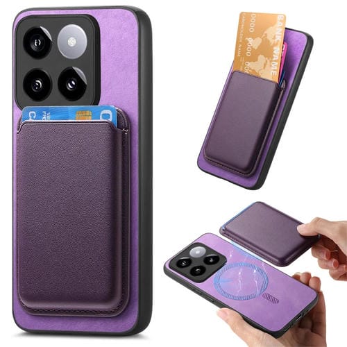 Para Xiaomi 14 Retro Magsafe Card Bag Pu Funda Para Teléfono Con Contraportada (Púrpura)