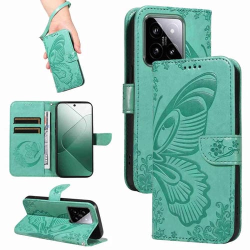 Pour Xiaomi 14 Swallowtail Butterfly Embossed Leather Phone Case (Vert)