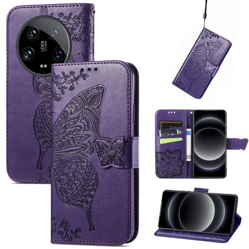 Para Xiaomi 14 Ultra Butterfly Love Flower Funda De Cuero Para Teléfono En Relieve (Púrpura Oscuro)