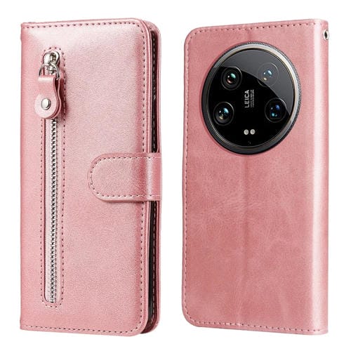 Para Xiaomi 14 Ultra Fashion Becerro Textura Cremallera Funda De Cuero Para Teléfono (Oro Rosa)