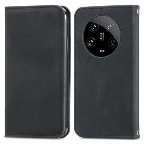 Para Xiaomi 14 Ultra Retro Skin Feel Funda De Teléfono De Cuero Con Tapa Magnética (Negro)