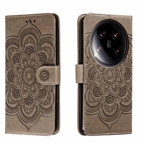 Para Xiaomi 14 Ultra Sun Mandala Funda De Cuero Para Teléfono Con Patrón En Relieve (Gris)