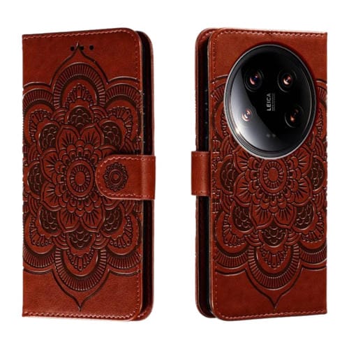 Para Xiaomi 14 Ultra Sun Mandala Funda De Cuero Para Teléfono Con Patrón En Relieve (Marrón)