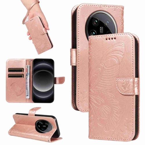 Para Xiaomi 14 Ultra Swallowtail Butterfly Funda De Cuero En Relieve Para Teléfono (Oro Rosa)