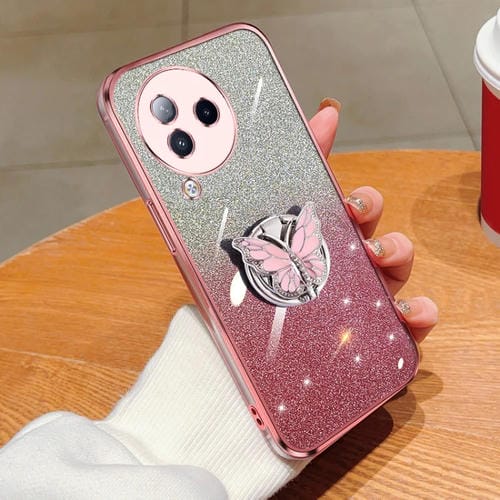 Para Xiaomi Civi 3 Funda para Teléfono de TPU con Soporte de Mariposa con Brillo Degradado Plateado (Rosa)