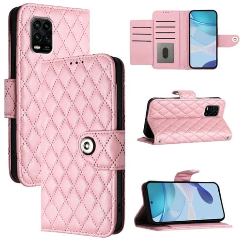 Para Xiaomi Mi 10 Lite 5G Funda para Teléfono de Cuero con Tapa con Textura Romboidal y Cordón (Rosa)